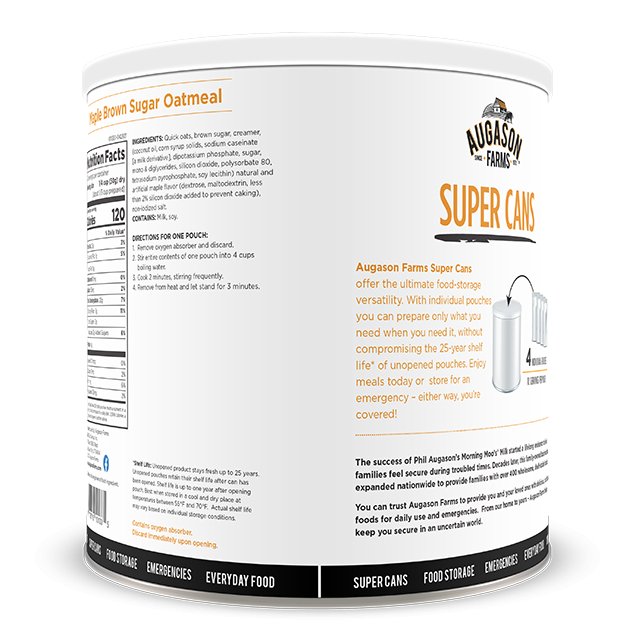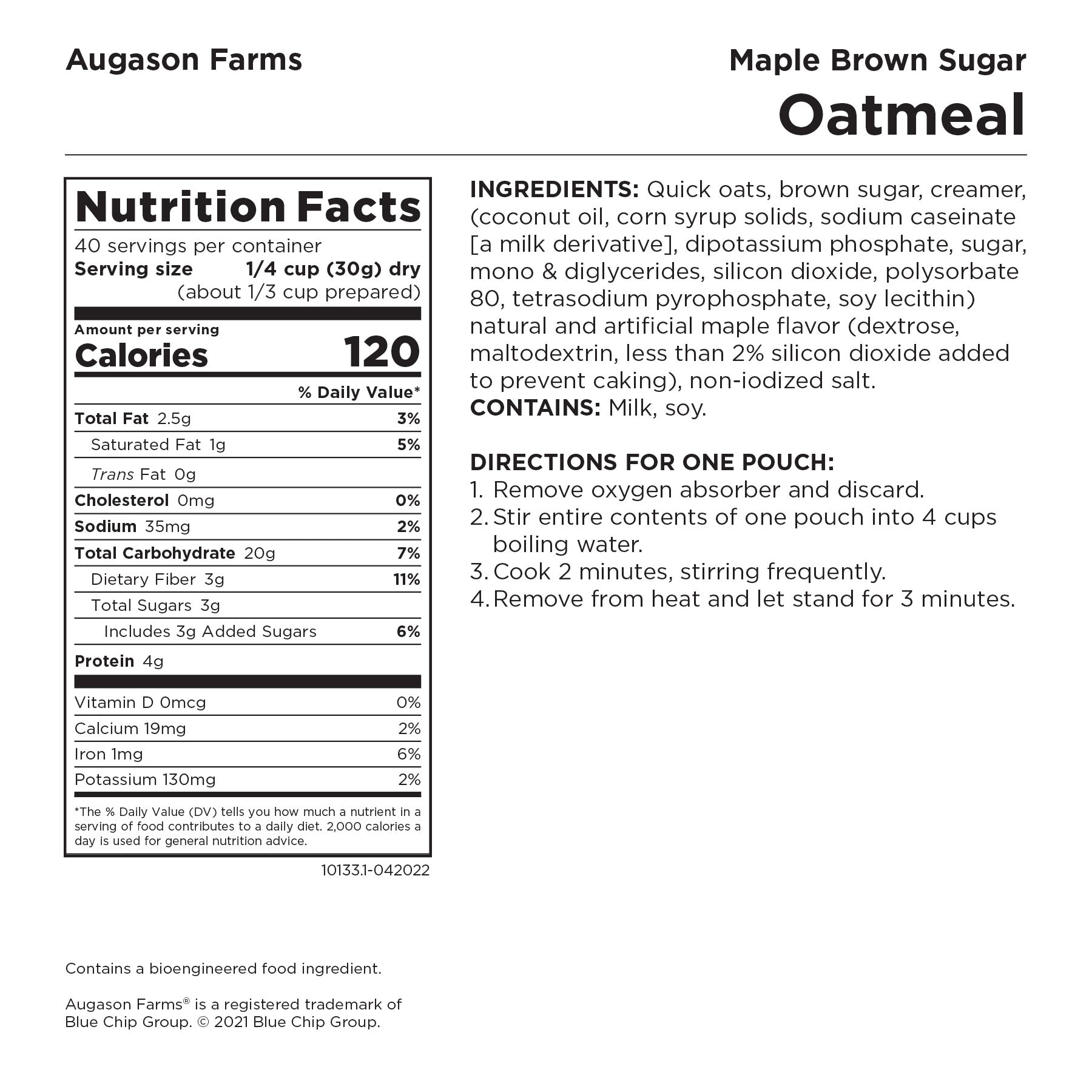 Warm, comforting oatmeal with a touch of maple and brown sugar sweetness. This classic blend delivers a smooth, hearty texture with rich flavor in every bite. Just add water and cook for a quick, satisfying meal that feels like home. It is an easy way to keep a dependable, great-tasting breakfast ready for busy mornings or long-term food storage.