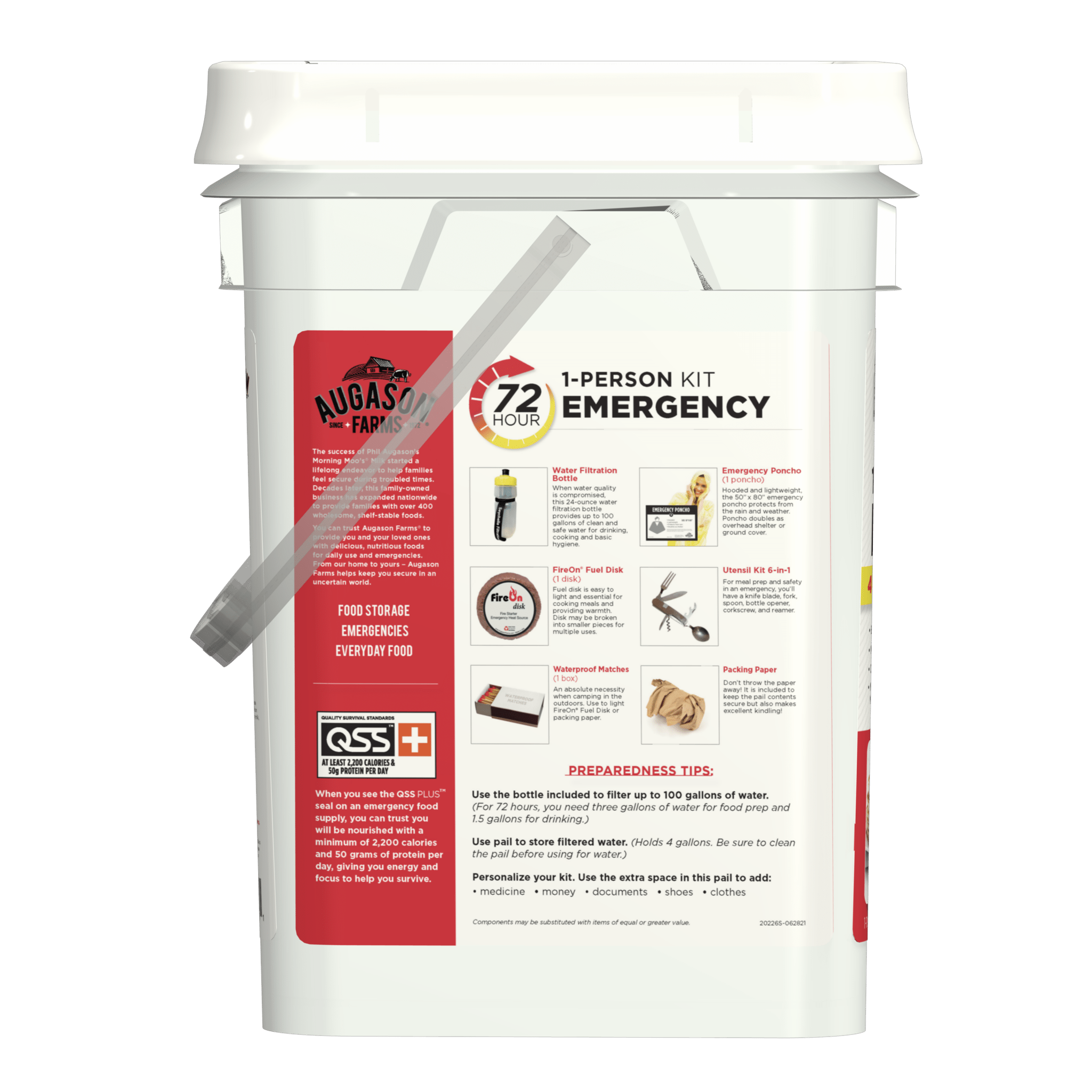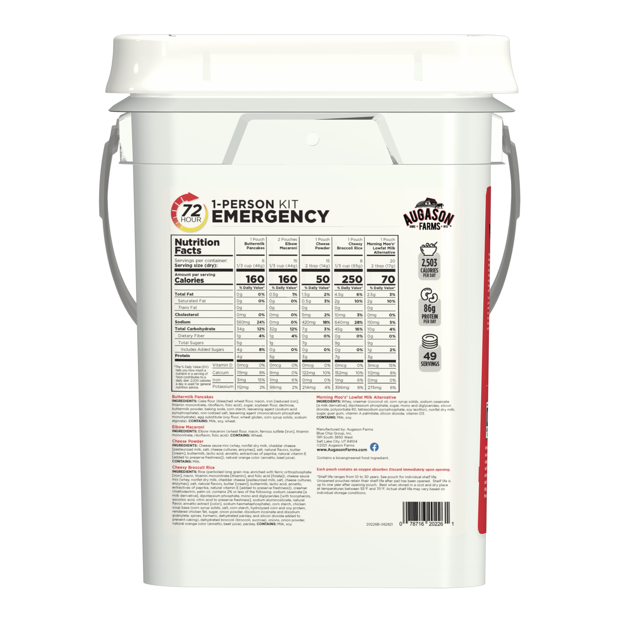 The Augason Farms 72-Hour 1-Person Emergency Kit is designed to give you reliable meals and survival tools when you need them most. It includes four meal varieties and five essential survival items packed in one durable pail. The kit delivers 2,503 calories and 86 grams of protein, enough to sustain one adult for three days. The buttermilk pancake mix has 7 years of shelf life remaining, while the other meals last up to 27 years, giving you long-term food security and peace of mind.