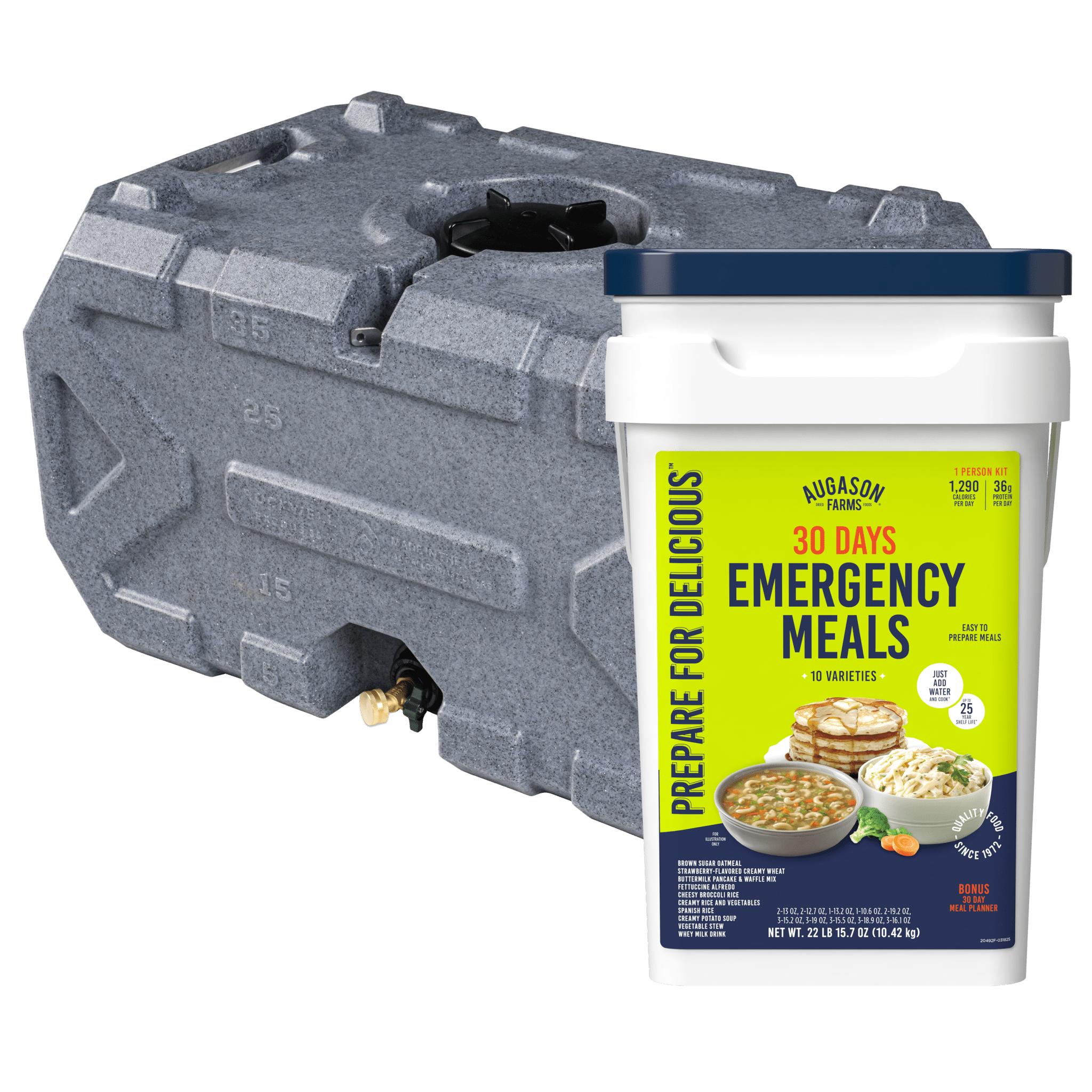 The Ultimate Emergency Starter Kit - 35 Gallon Water Tank & 1-Person 30-Day Emergency Food Supply Kit